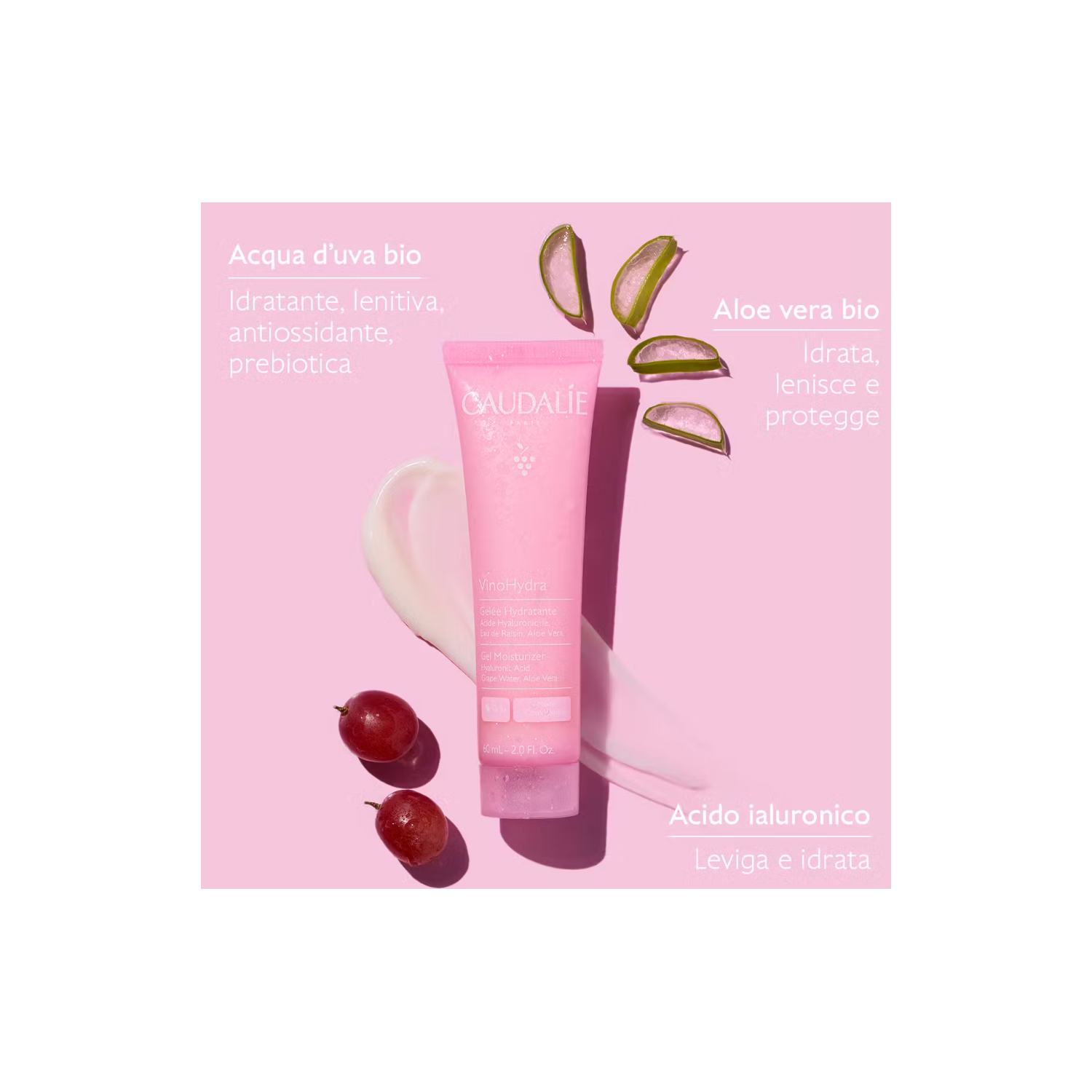Il Gel Idratante VinoHydra è un vero patch d'idratazione naturale. La sua texture gel ultra fresca, formulata senza siliconi, si fonde sulla pelle senza ungere ed è quindi ideale per le pelli miste, comprese quelle sensibili. All'applicazione la pelle è più morbida, come rimpolpata, e l'incarnato è più fresco.