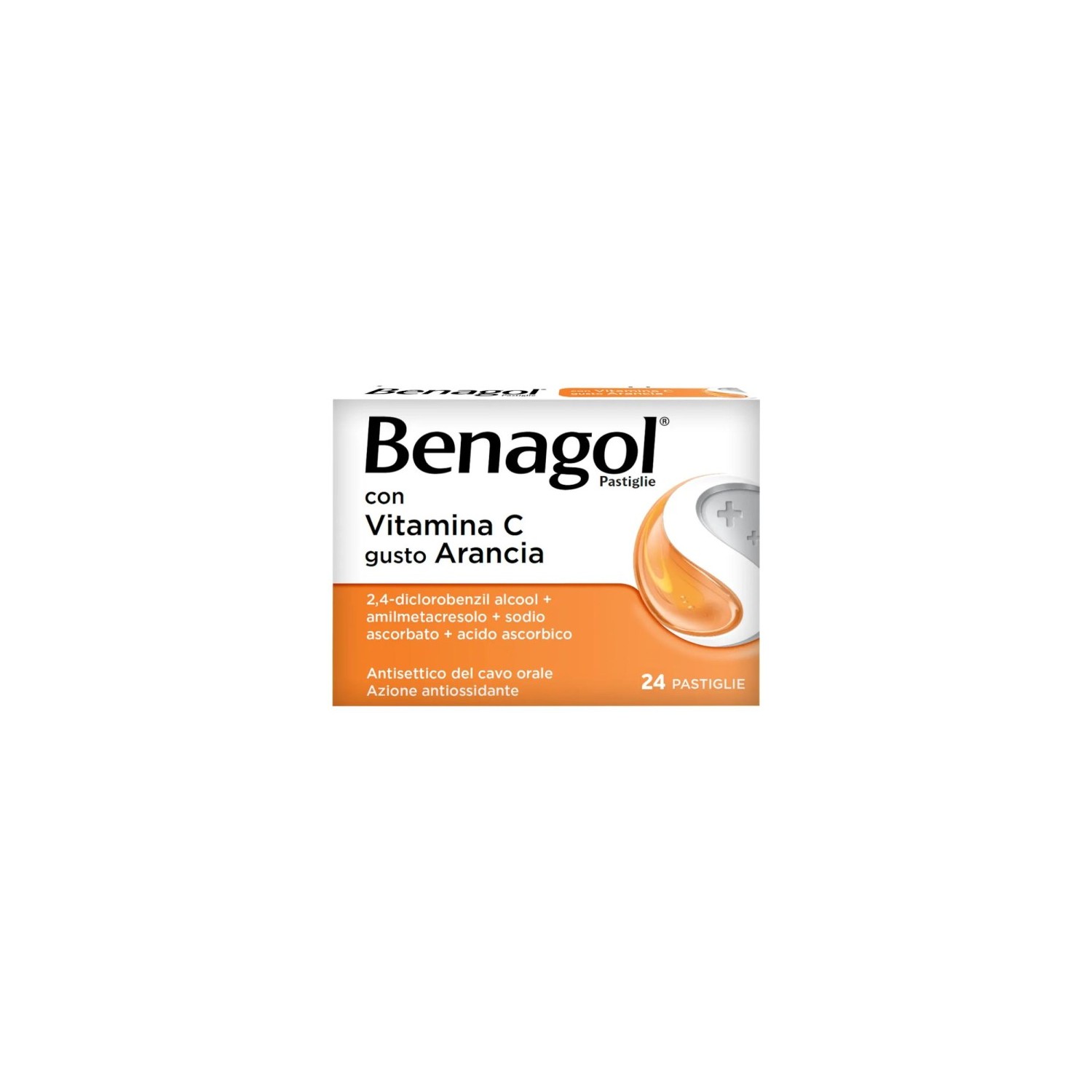 Pastiglie con Vitamina C gusto Arancia : 2,4-diclorobenzil alcool 1,2 mg; amilmetacresolo 0,6 mg; sodio ascorbato 74,9 mg; acido ascorbico 33,5 mg