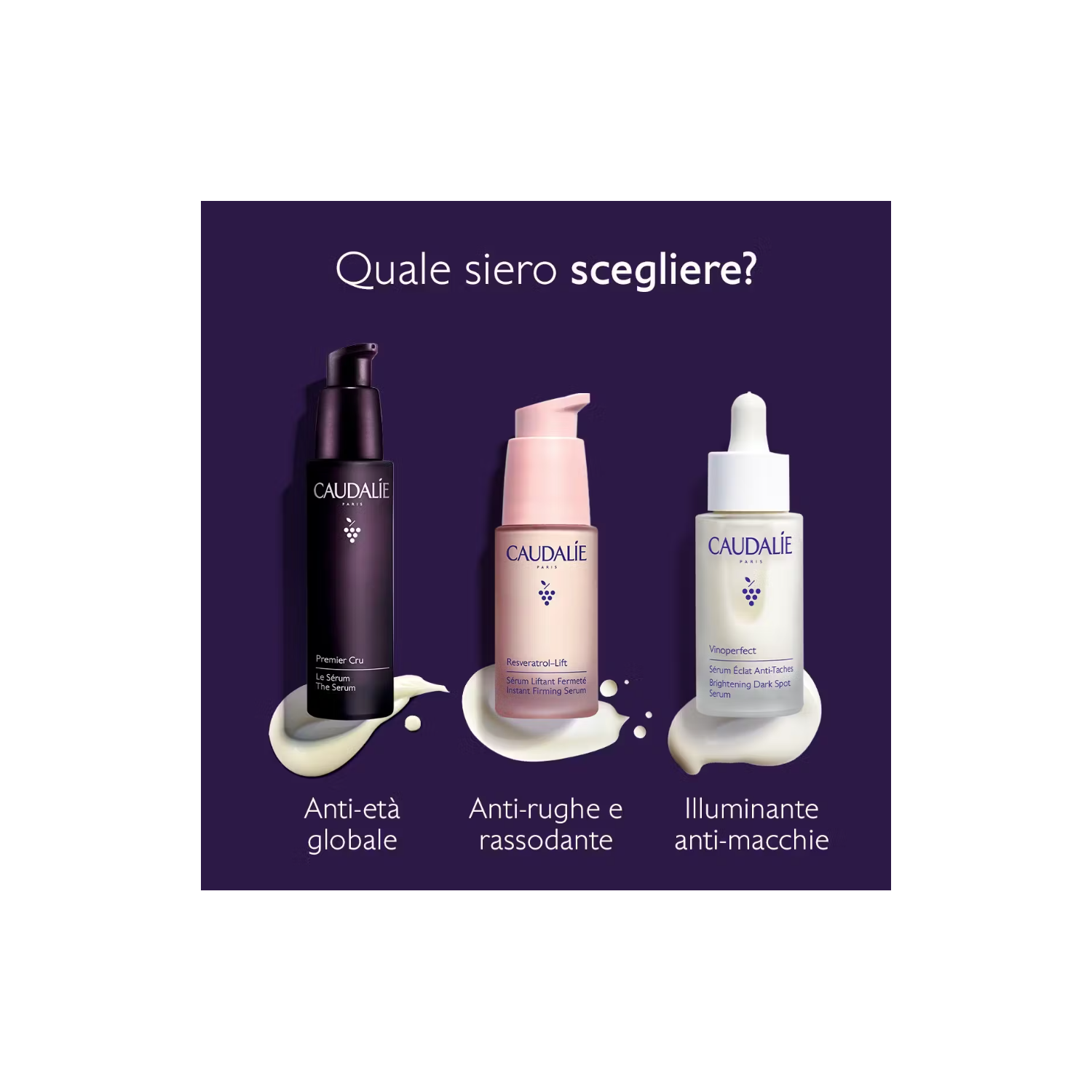Viniferina: Questo principio attivo, brevettato da Caudalie, ottenuto dalla linfa della vite, offre un'eccezionale azione antimacchia, 62 volte* più efficace della vitamina C. *Test in vitro sull'effetto inibitorio della viniferina sulla tirosinasi.