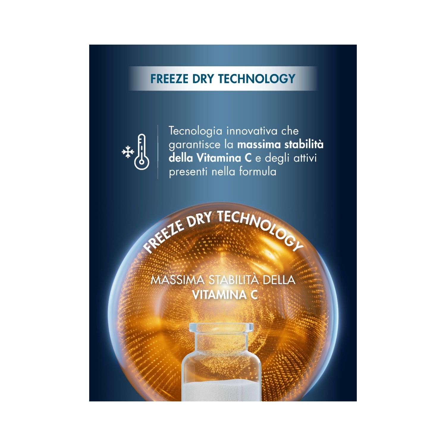 La tecnologia Freeze Dry (liofilizzazione) è un processo che consente di rimuovere l’acqua dagli attivi a basse temperature, preservandone integrità, stabilità ed efficacia nel tempo. L’ampolla multidose è composta da un sistema a doppia camera che separa la fase liquida dalla polvere liofilizzata, assicurando la massima stabilità della formula. I due comparti si miscelano solo nel momento dell’attivazione, consentendo la formazione di una soluzione fresca, altamente efficace e pronta all'uso..